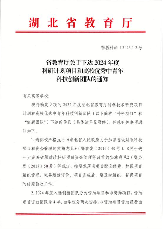 近日,省教育厅下达了2024年度科研计划项目立项名单及有关事项通知。
